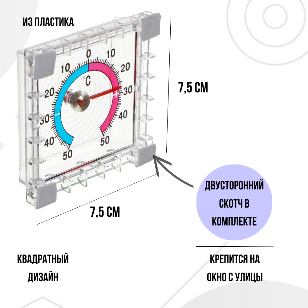 Термометр уличный, оконный, безртутный, с калибровкой точности температуры, с двусторонним скотчем