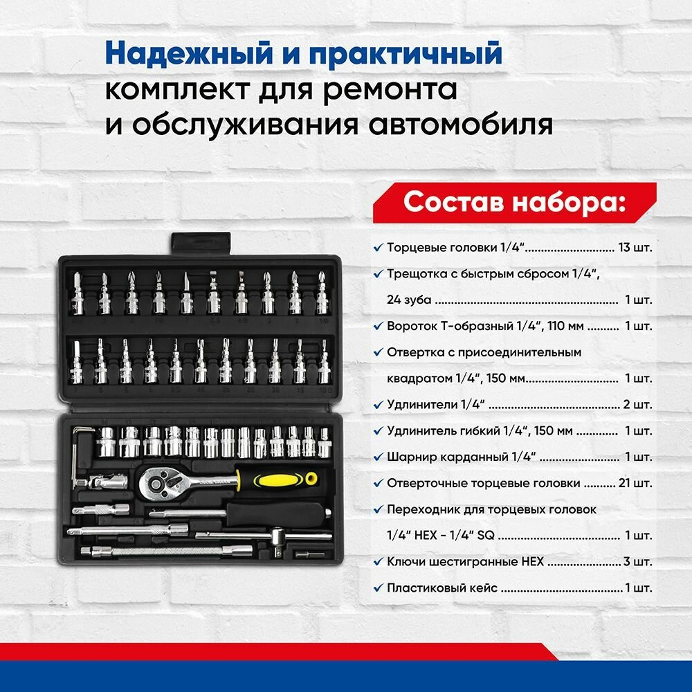 Набор инструментов 46 предметов "Гаражный" интересное: