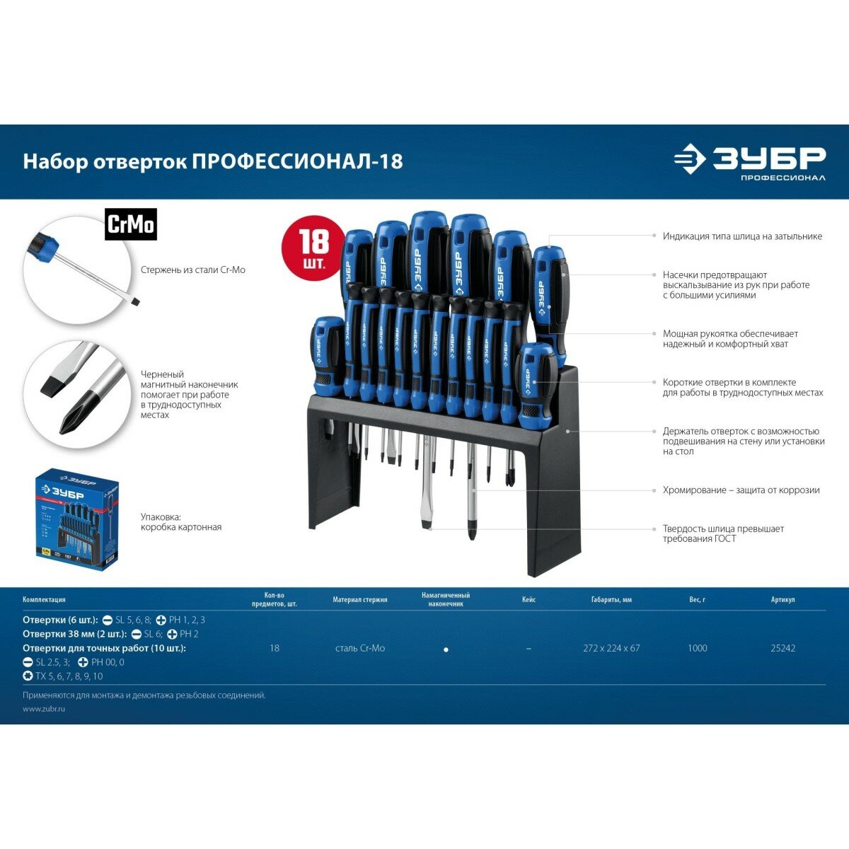 Набор отверток ЗУБР 25242, в держателе, 18 штук интересное:
