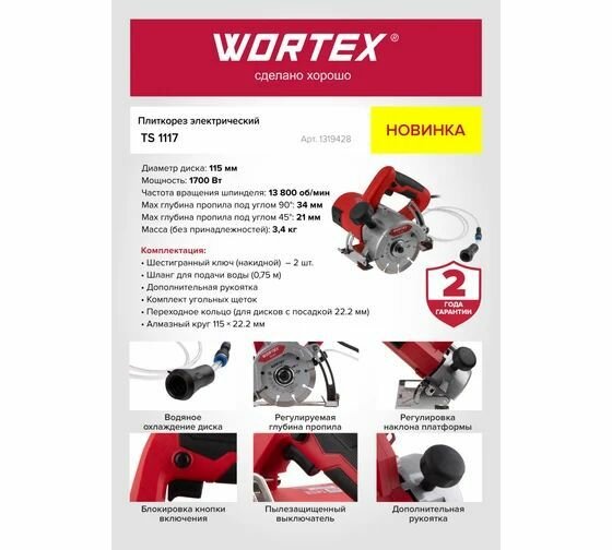 Электрический плиткорез WORTEX TS 1117 в кор. 1319428 интересное: