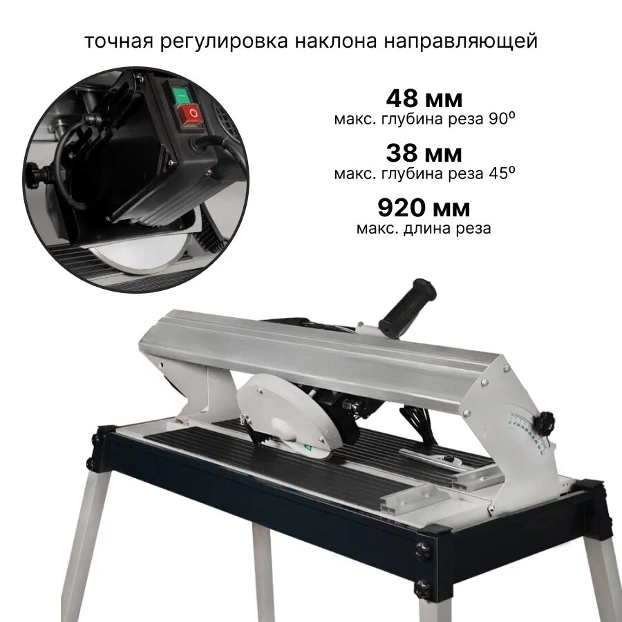 Плиткорез электрический / Плиткорез электрический с водяным охлаждением / Заусовщик для плитки под 45 Electrolite ЭПЛ 1000 EL ( 1000 Вт, длина реза 620 мм, диск 200 мм )
