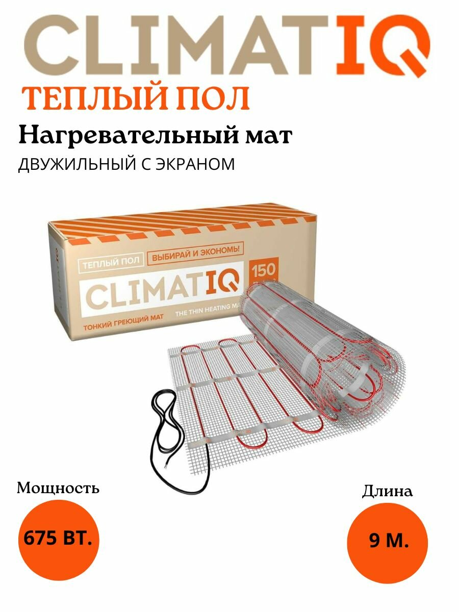 Теплый пол IQWATT CLIMATIQ MAT-675 4,5 кв м(электрический нагревательный мат)