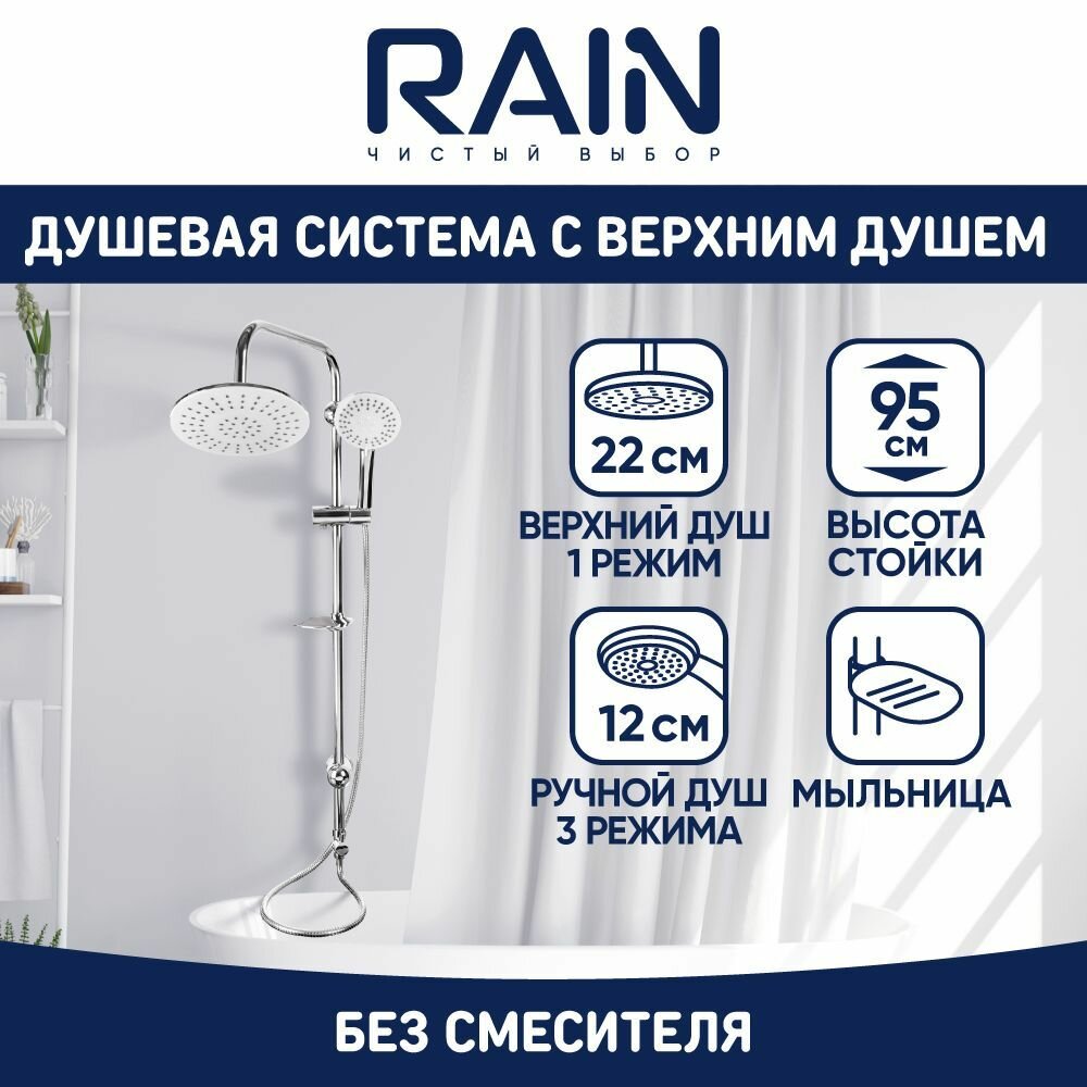 Душевая система RAIN, верхний душ 1 режим, ручной душ 3 режима, хром