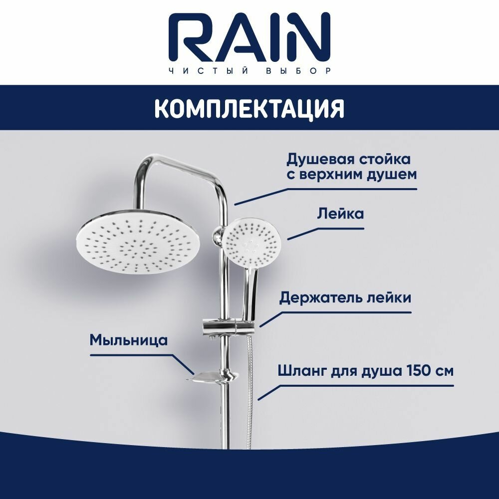 Душевая система RAIN верхний душ 1 режим, ручной душ 3 режима, хром