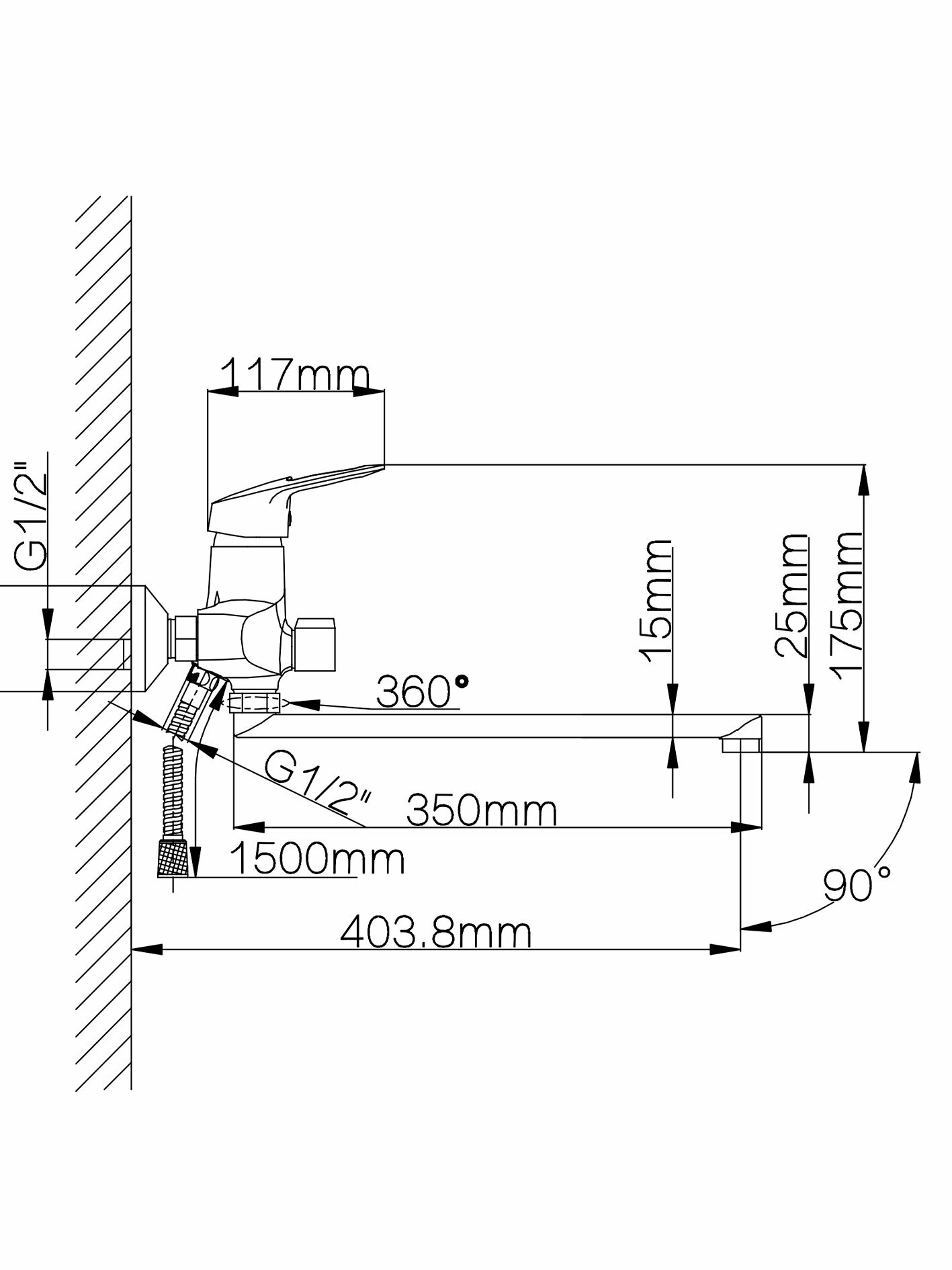 Hansen H22030 смеситель для ванны (лейка, шланг, кронштейн) хром