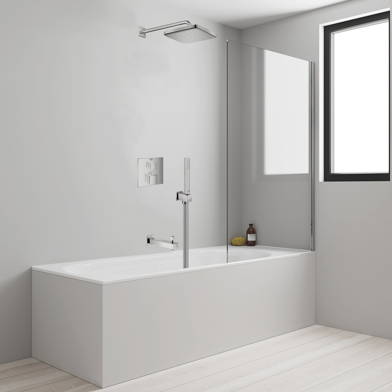 Душевая система с тропическим душем, термостатом и изливом Grohe Grohtherm Spout Cube Professional 250