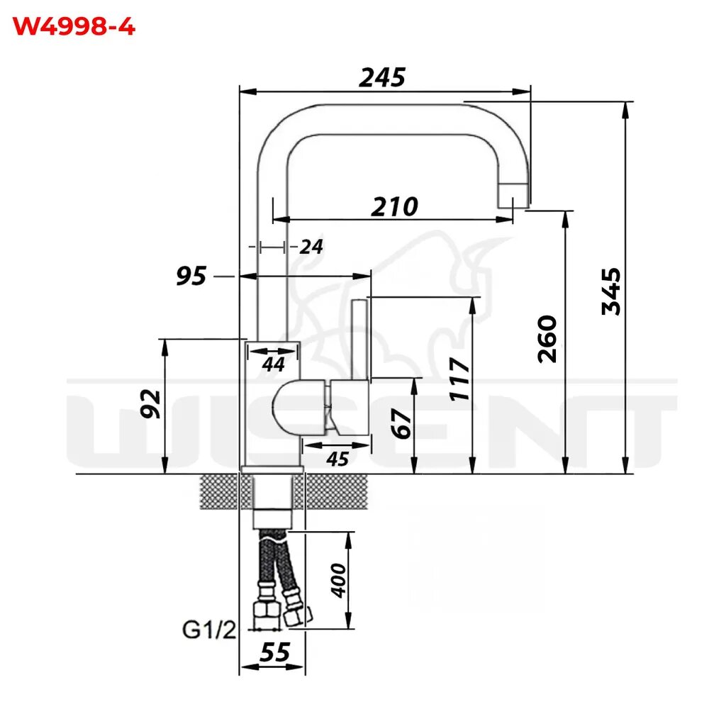 Смеситель для кухни (оникс, черный) WISENT W4998-4-25