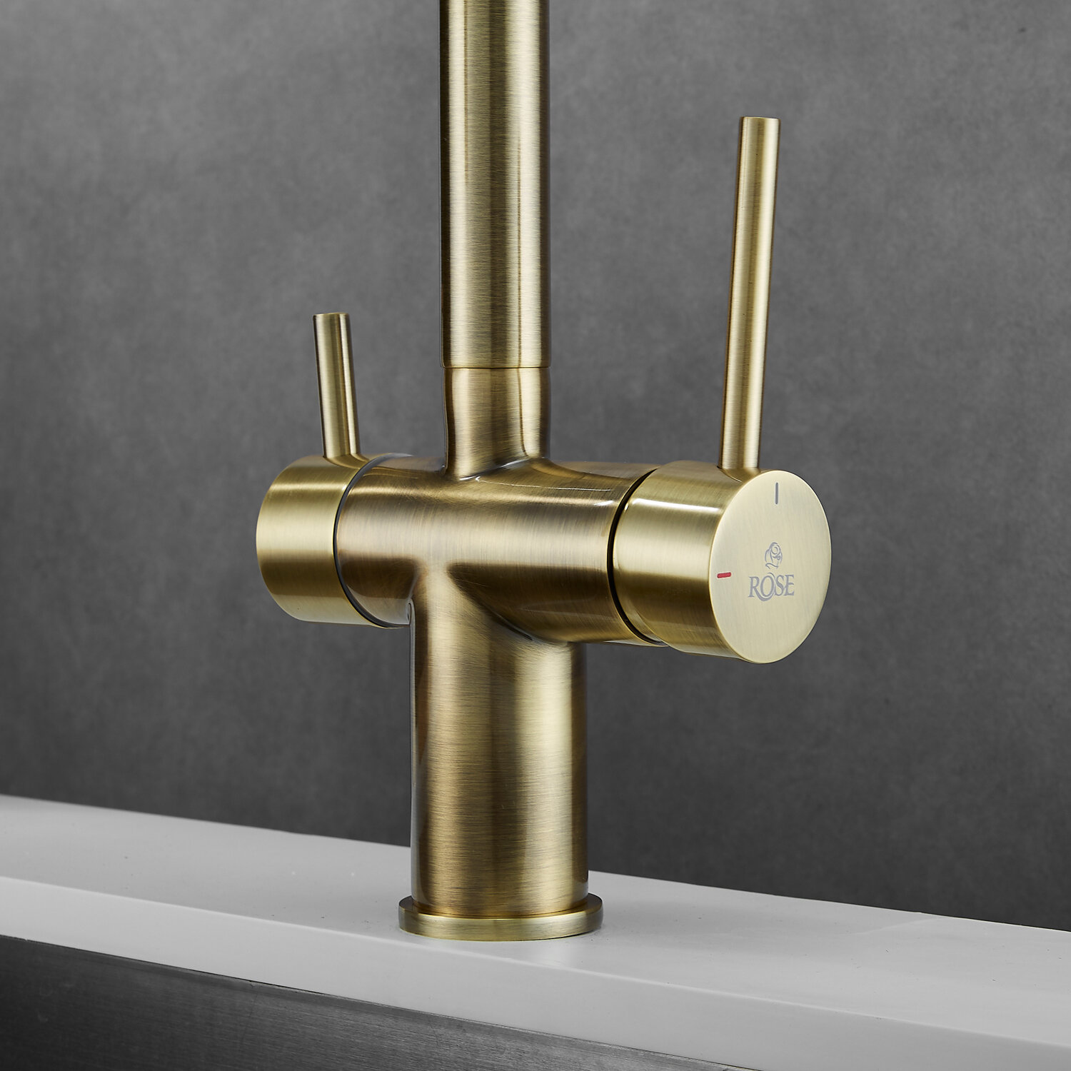 Смеситель для кухни Rose R958G с гибким изливом, с подключением фильтра, золотой сатин