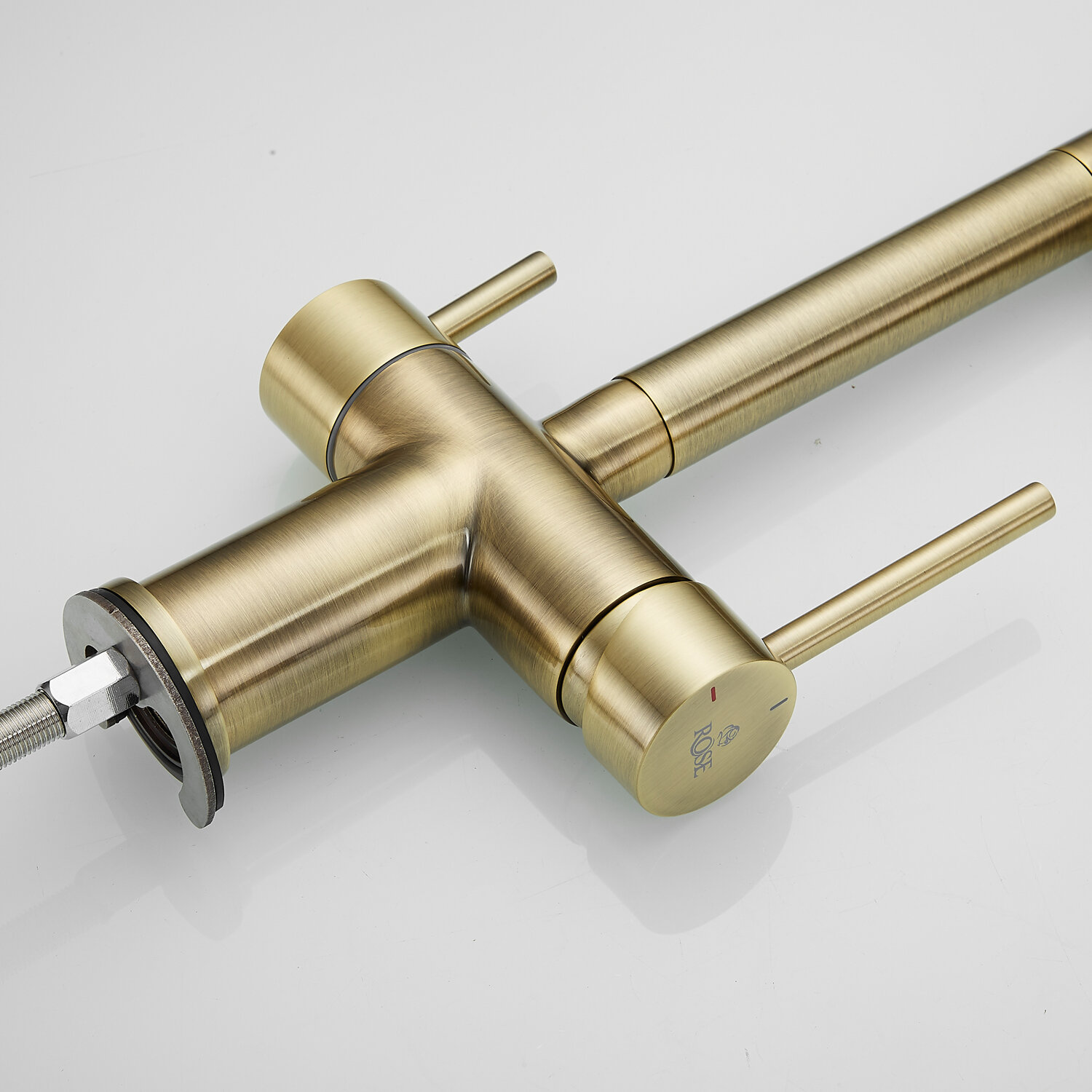 Смеситель для кухни с гибким изливом и подключением к фильтру Rose R958 Q цвет бронза