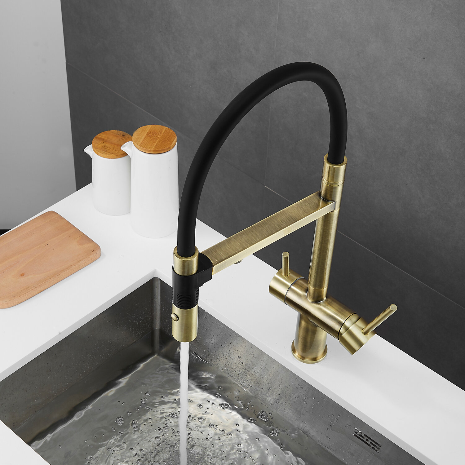 Купить Смеситель для кухни с гибким изливом и подключением к фильтру Rose R958Q, бронза