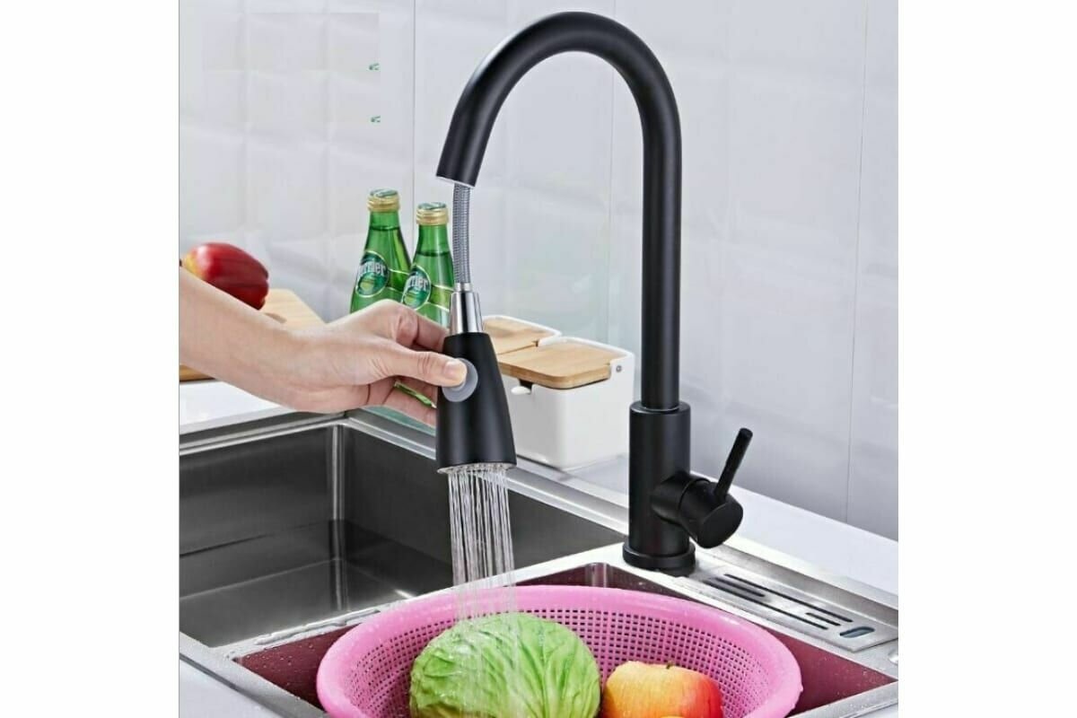 Смеситель для кухничерный с вытяжной лейкой, кран на кухню FASHUN A56109-7