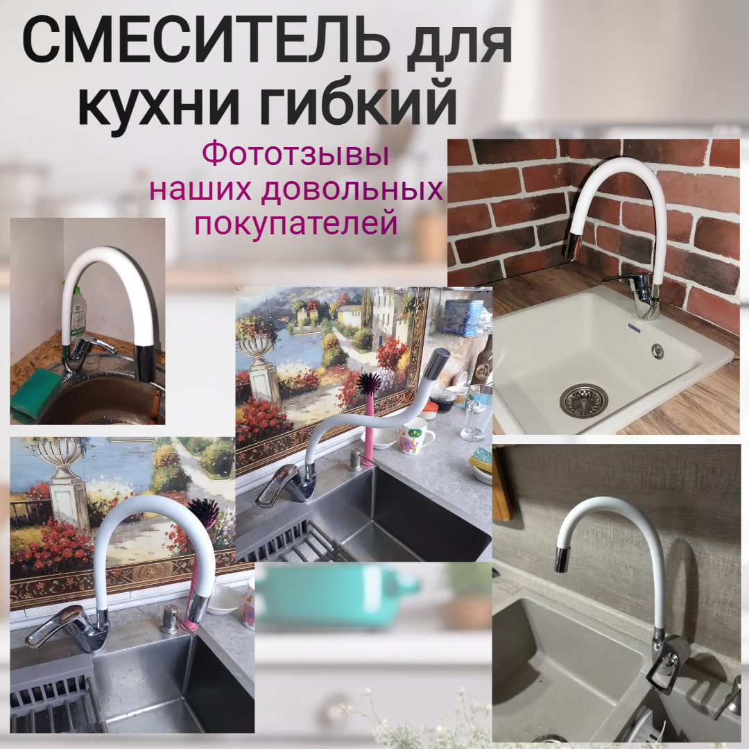 Смеситель для кухни, мойки, с гибким силиконовым изливом, кран для кухни G.lauf G4002-2, белый