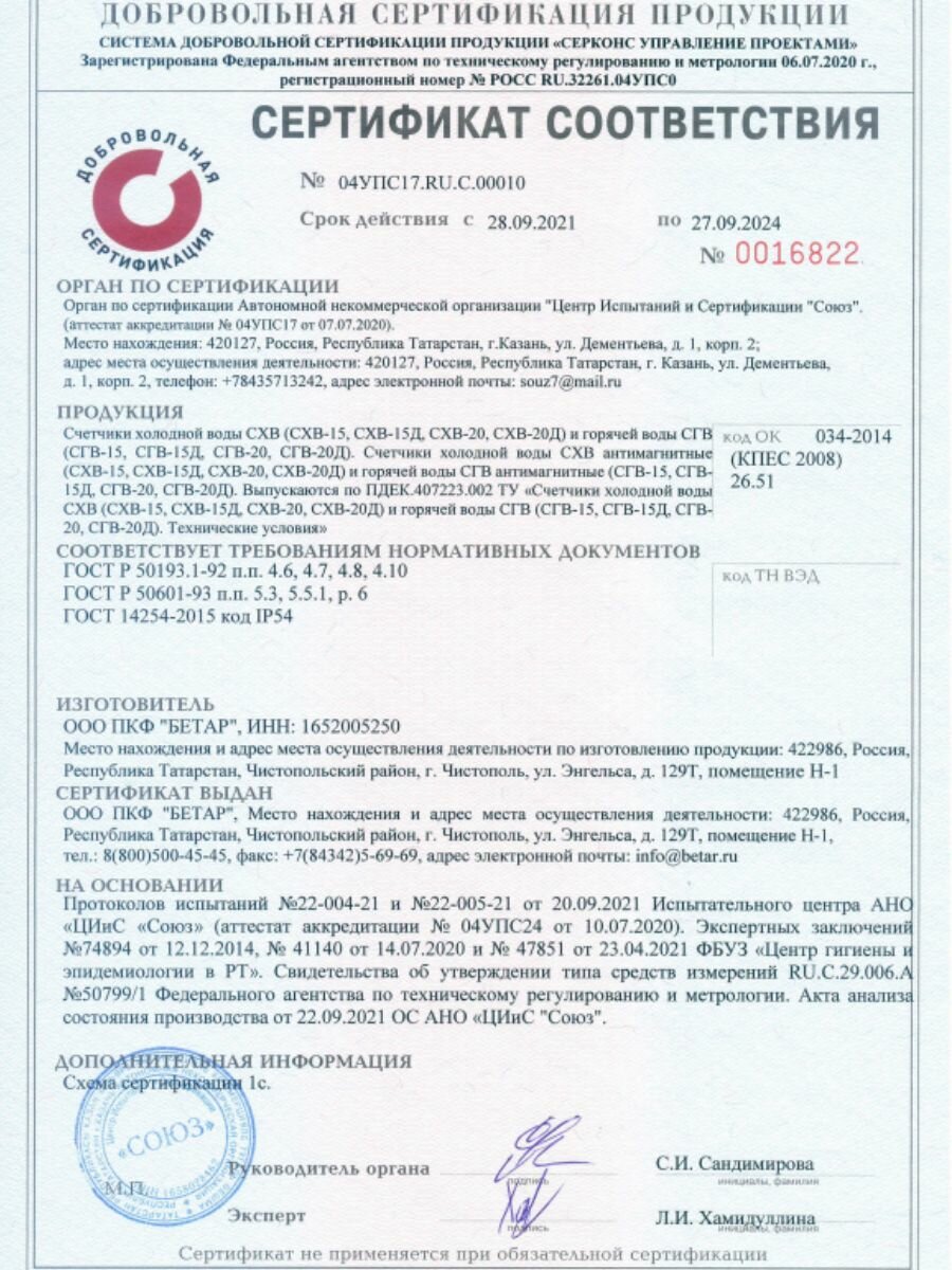 Счётчик холодной воды Бетар СХВ-20 1"