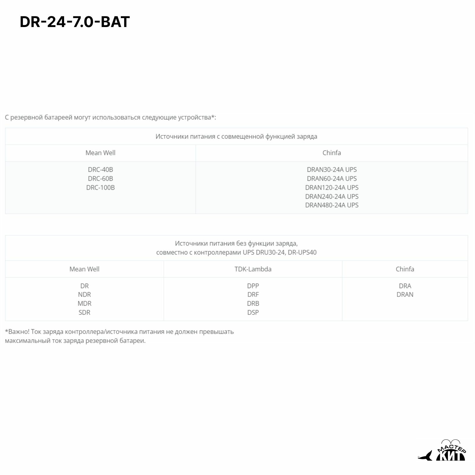 Резервная аккумуляторная батарея 24В 7,0Ач, DR-24-7.0-BAT Мастер Кит интересное: