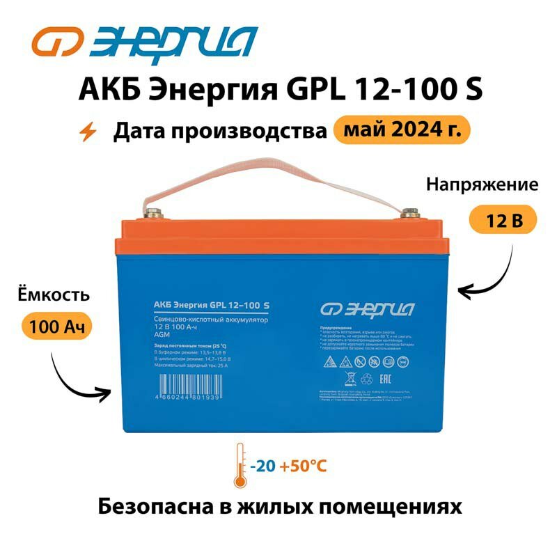 СохранитьАккумулятор Энергия GPL 12-100 S, 12V, 100Ач, AGM интересное: