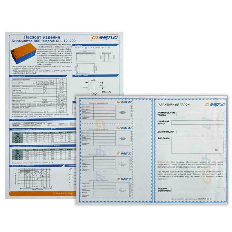 АКБ Энергия GPL 12–200 S