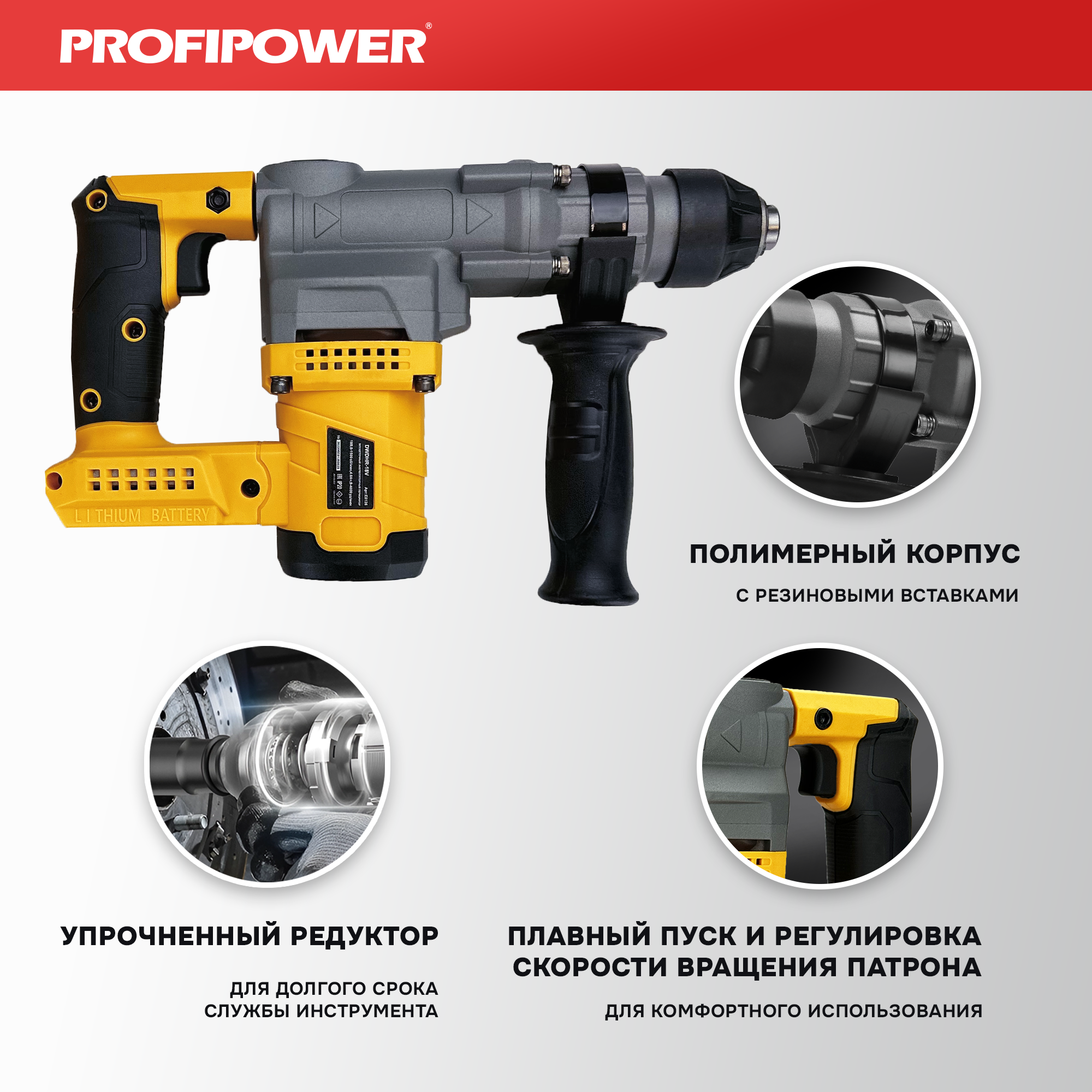 Перфоратор аккумуляторный ProfiPower DWDHR-18V (кейс, с АКБ и ЗУ) интересное: