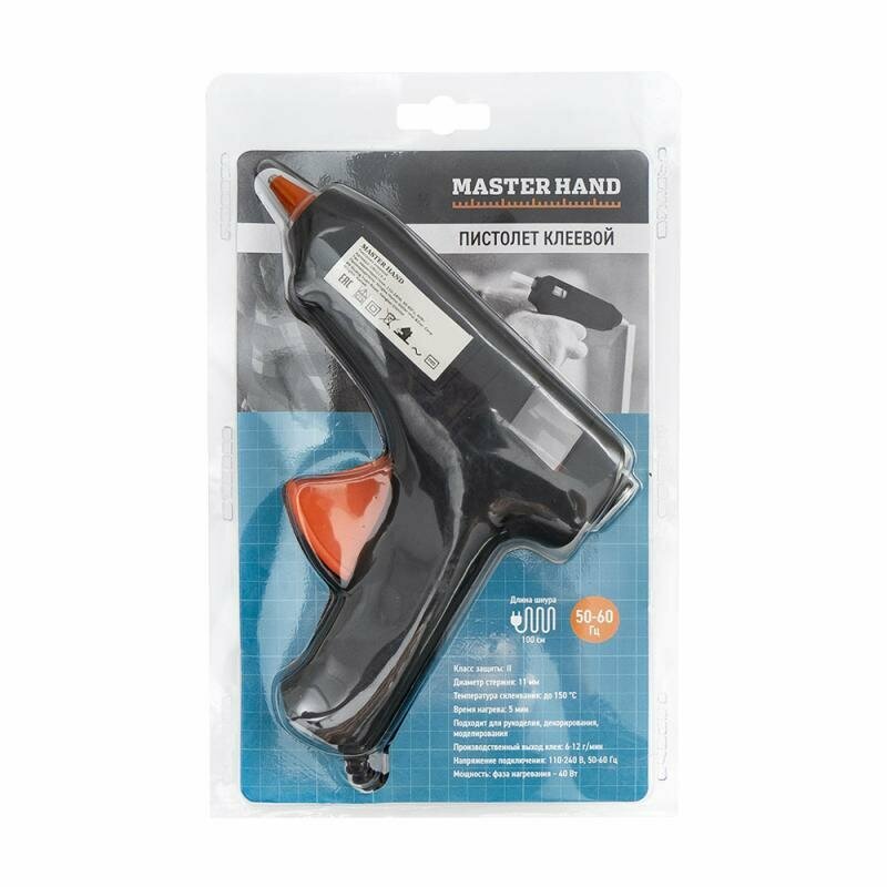 Купить Пистолет Master Hand, 220В, 50 Гц, с клеевым стержнем 11мм, питание от сети, время нагрева 30 секунд
