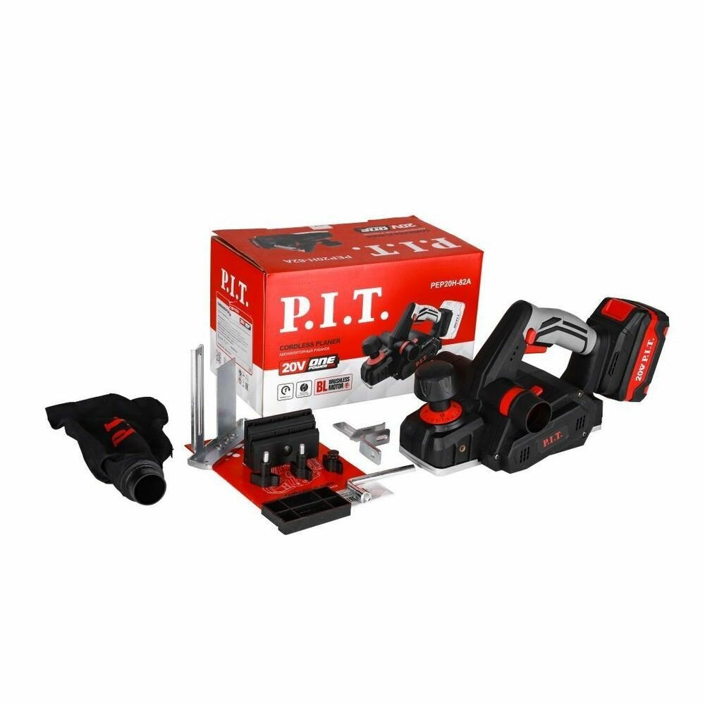 Аккумуляторный бесщеточный рубанок P.I.T. PEP20H-82A SOLO (без АКБ и ЗУ) на системе OnePower (20В,16000 об/мин, нож 82мм, рег-ка 0-2мм) интересное: