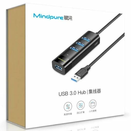USB концентратор Mindpure Хаб / Hub 3.0 4 USB + Type-C разъем питания US022 17см интересное: