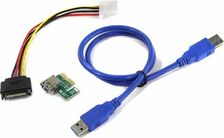 Райзер карта Espada EPCIeKit02, PCI-Ex1 to PCI-Ex16, кабель Usb3.0, с доп питанием, OEM