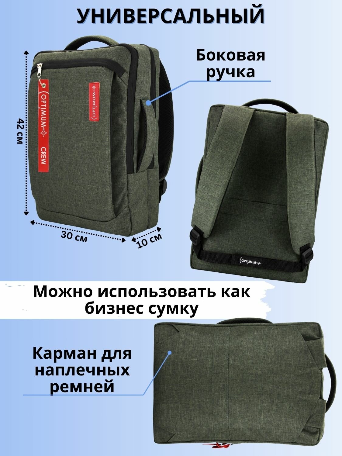 | Особенности | внешний карман, возможность крепления на тележку, защита от воды, карман для телефона, отделение-органайзер |