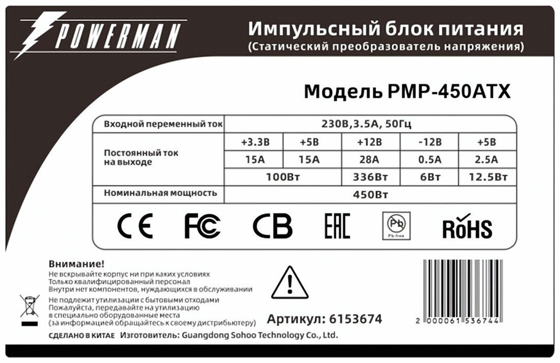 Блок питания Powerman PMP-ATX 450