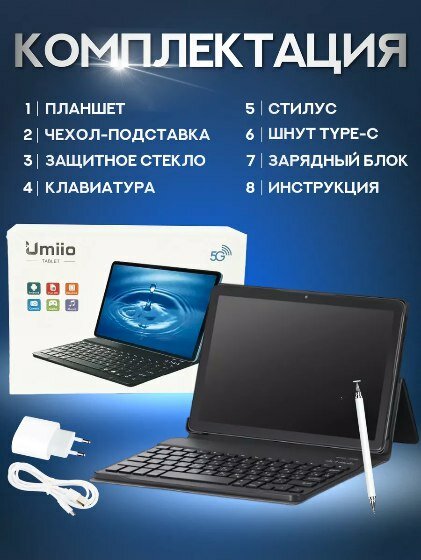 | Комплектация | Планшет, стилус, клавиатура, мышка, защитное стекло, чехол, зарядник |