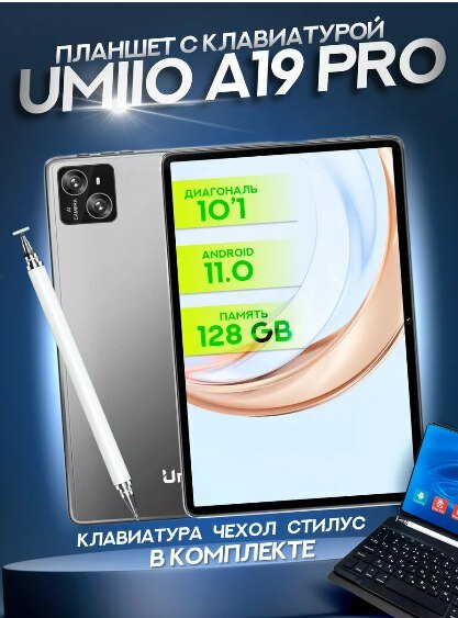 Планшет Umiio A19 Pro с клавиатурой, чехлом и стилусом / 10 ядер/ 6 gb / 128, 10.1", 128GB, серый Tablet Umiio Android 11.0G