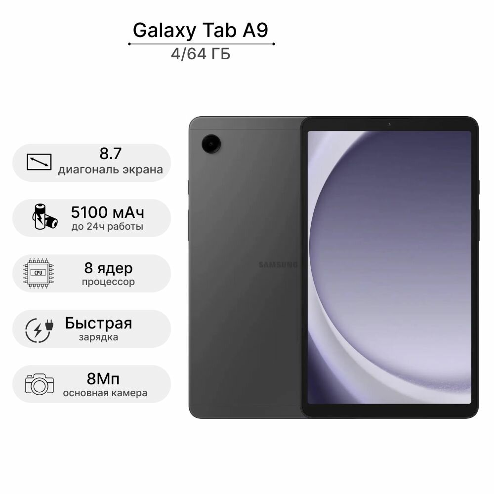 8.7" Планшет Samsung Galaxy Tab A9 (2023), 4/64 ГБ, Wi-Fi, Android 13, графитовый