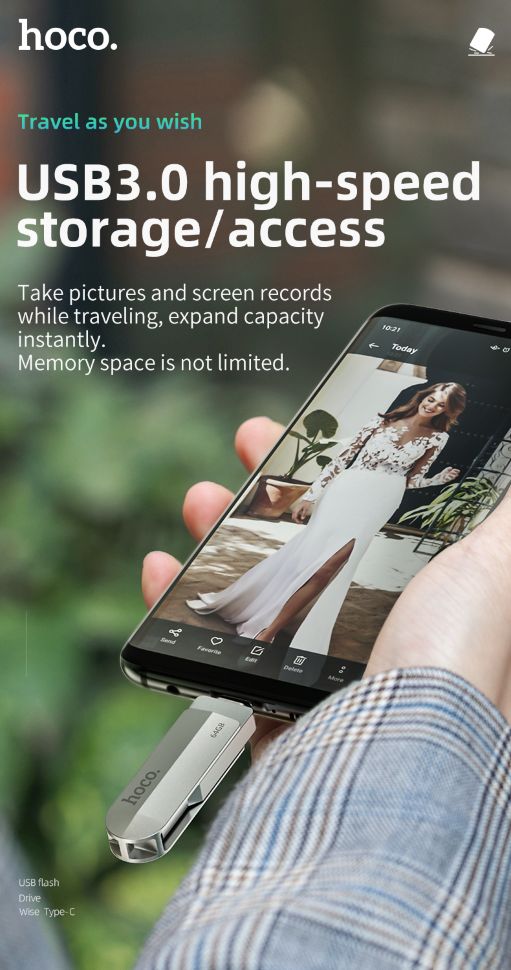 Внешний накопитель Type- C USB Hoco UD10 16Gb интересное:
