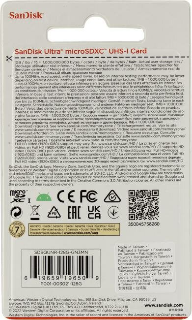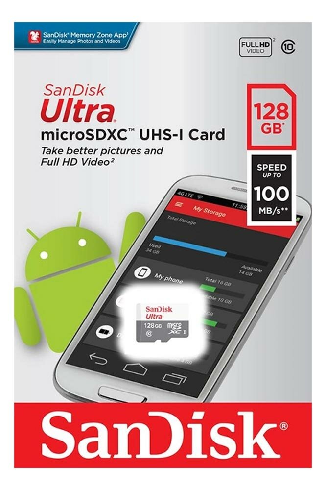 128GB Карта памяти MicroSD SANDISK Class 10 Ultra UHS-I (100 Mb/s) без адаптера (SDSQUNR-128G-GN3MN)