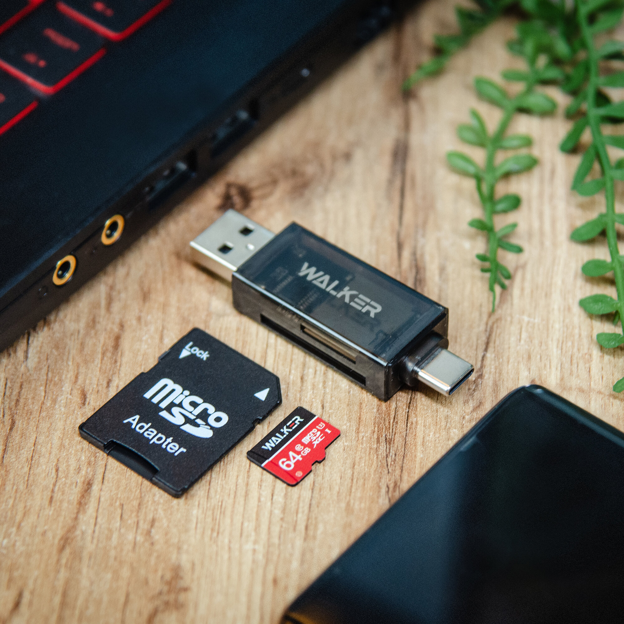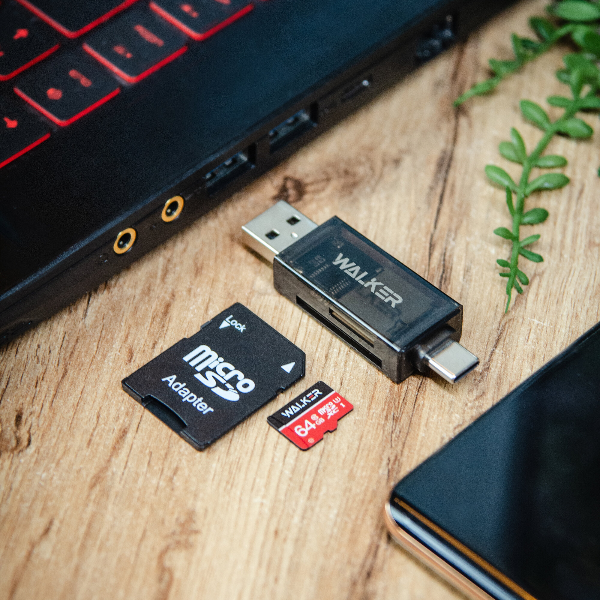 Купить Внешний картридер Type-C-USB, переходник адаптер для карты памяти microsd в sd, card reader, устройство чтения, черный