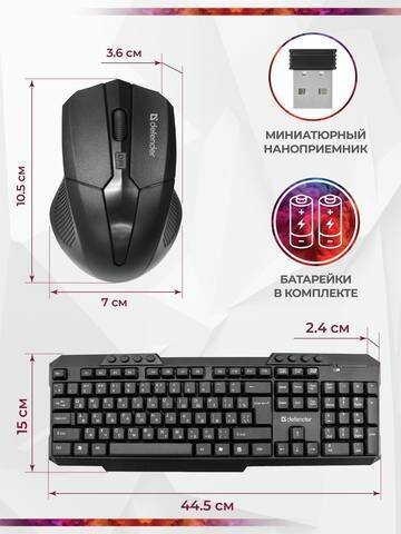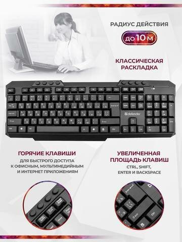 Беспроводной набор "Defender Jakarta C-805" - клавиатура и мышь, единый адаптер, черный интересное: