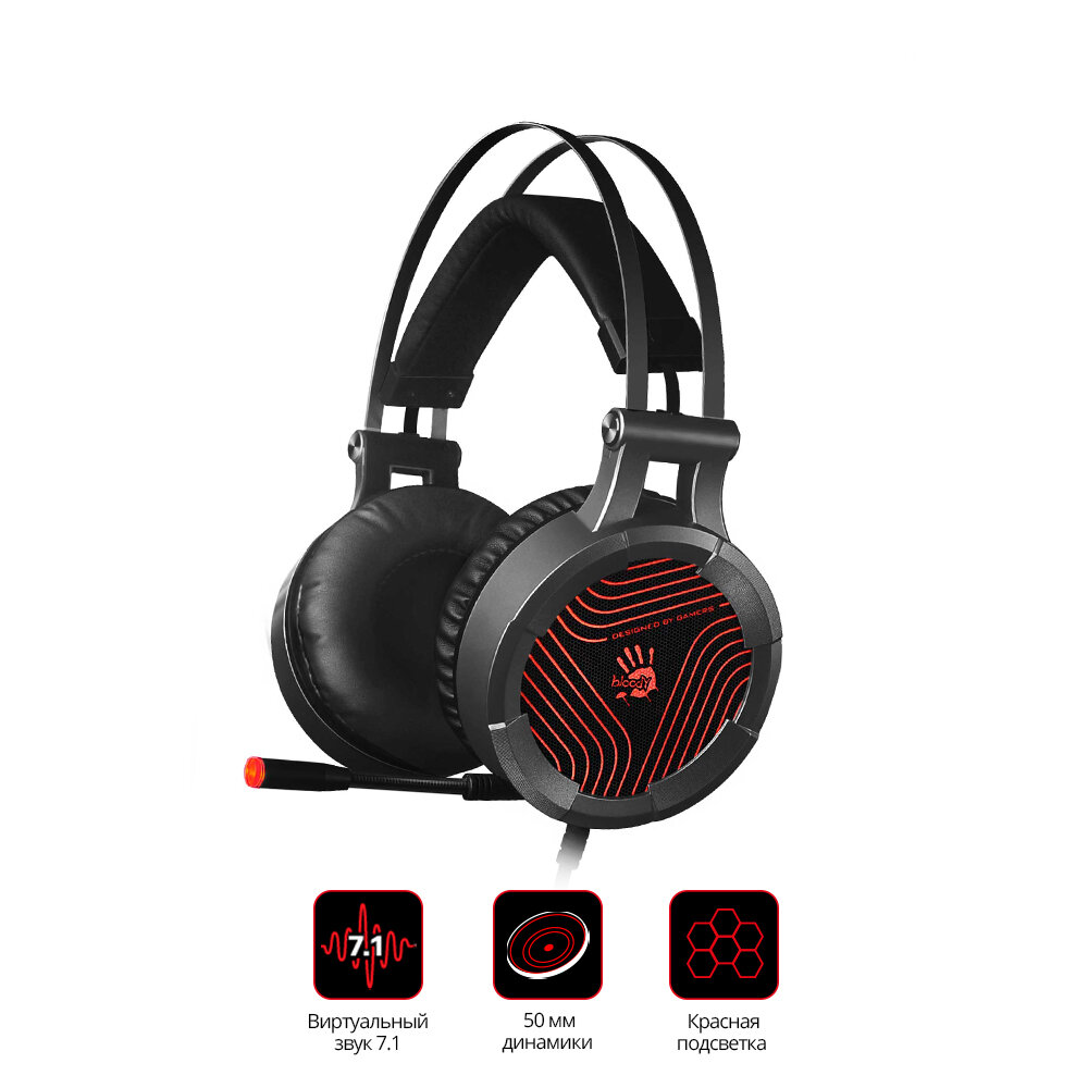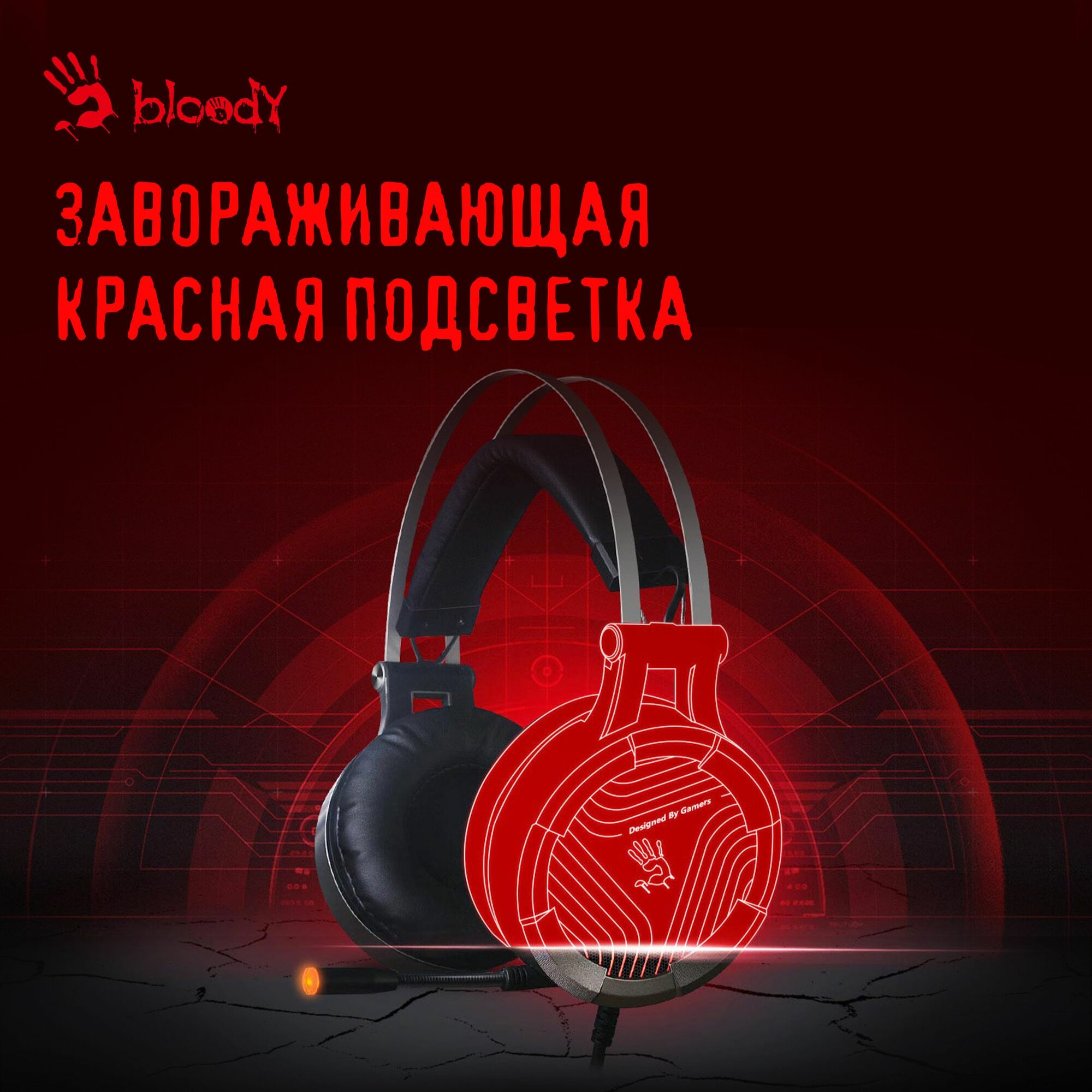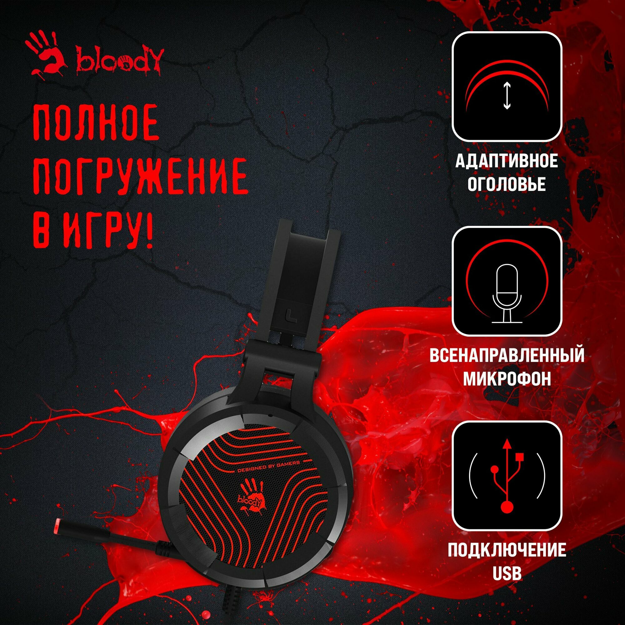 Наушники A4Tech Bloody G575P [закрытые, 20-20КГц, микр.,RGB, каб. 2м, разъем USB+3.5 Jack, черный]