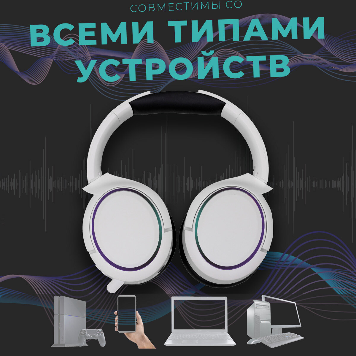 СохранитьНаушники беспроводные, с микрофоном, RGB подсветкой, блютуз гарнитура, белый интересное: