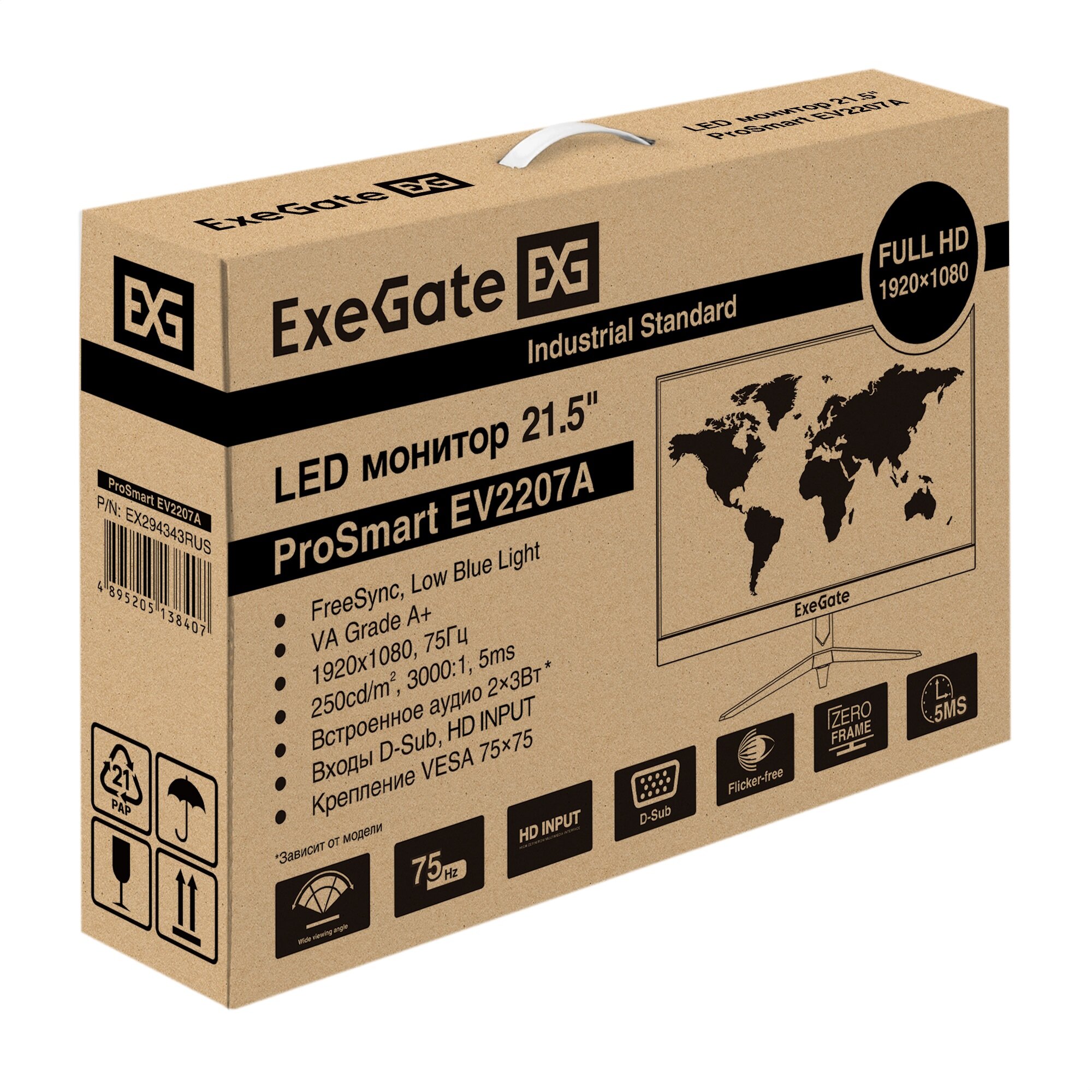 LCD ExeGate 21.5" EV2207A ProSmart черный {VA 1920x1080 75Hz 5ms 16:9 280cd 3000:1 178/178 D-Sub HDMI2.0 FreeSync LowBlueLight 2x3W VESA регулировка наклона} [EX294343RUS]