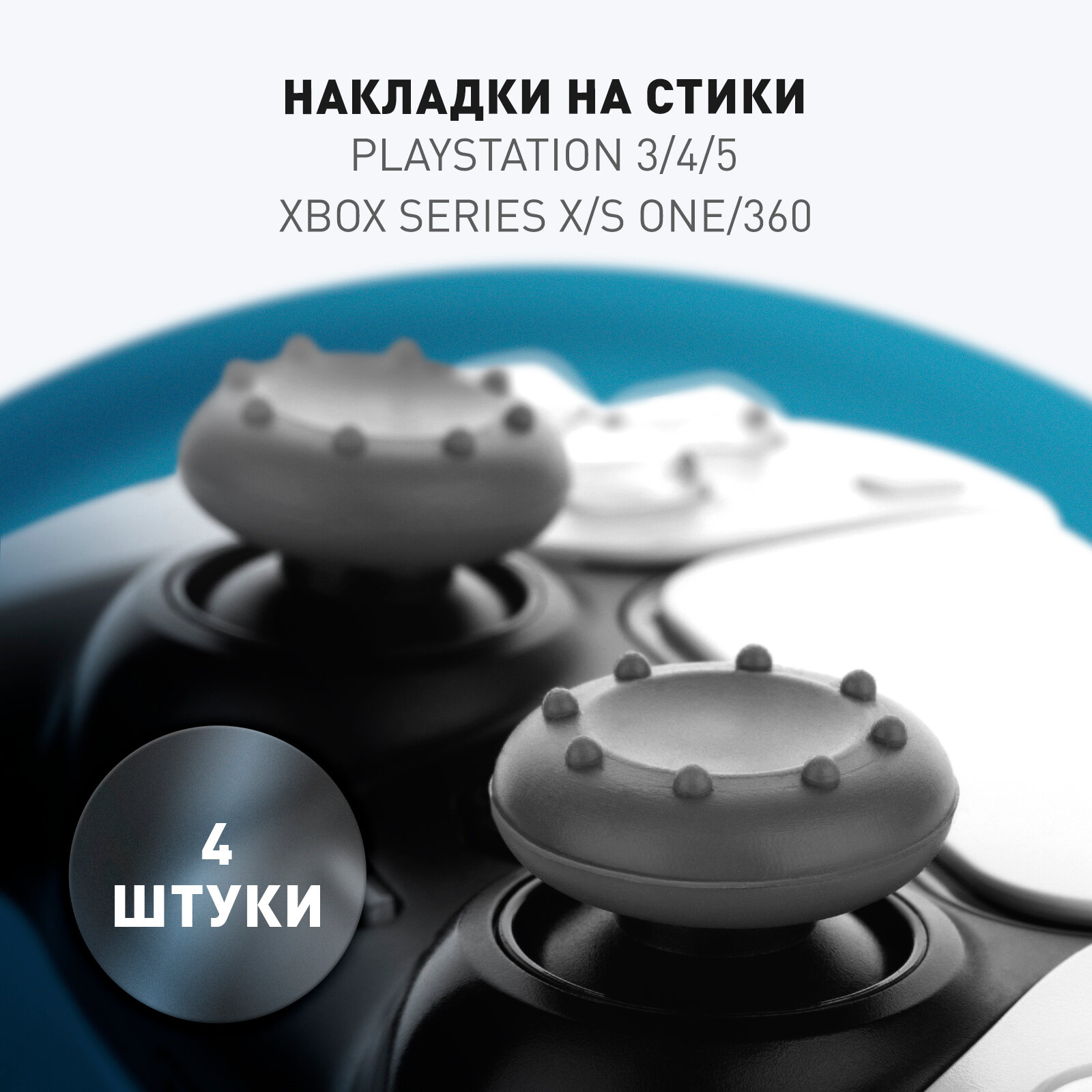 Купить Накладки на стики XBox, Playstation PS5, PS4, PS3, серый, 4 шт