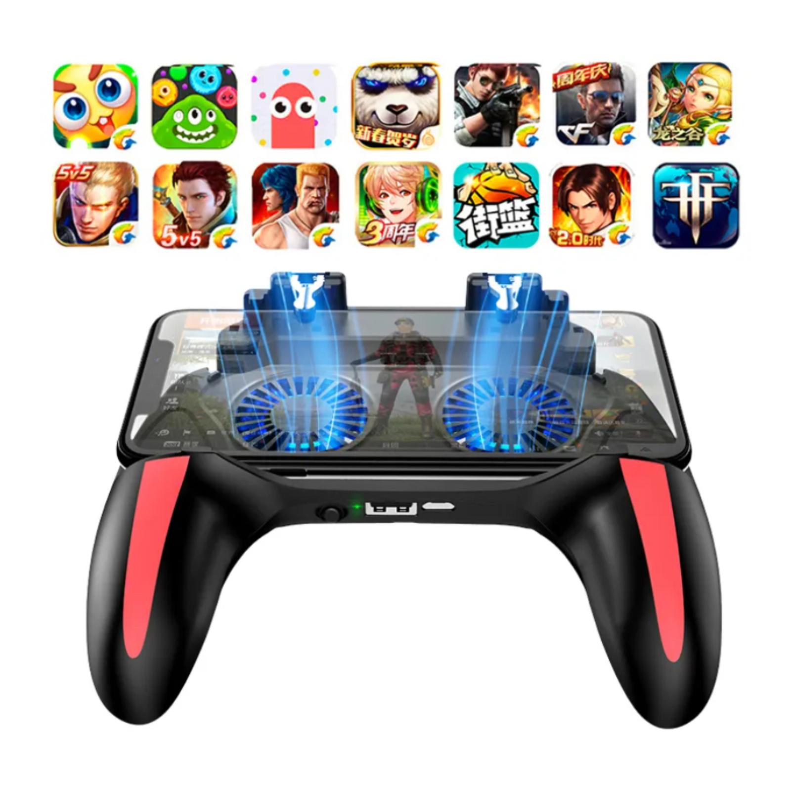 Беспроводной геймпад держатель триггер джойстик для телефона CASH OF CLANS PUBG, встроенный аккумулятор система охлаждения, черный