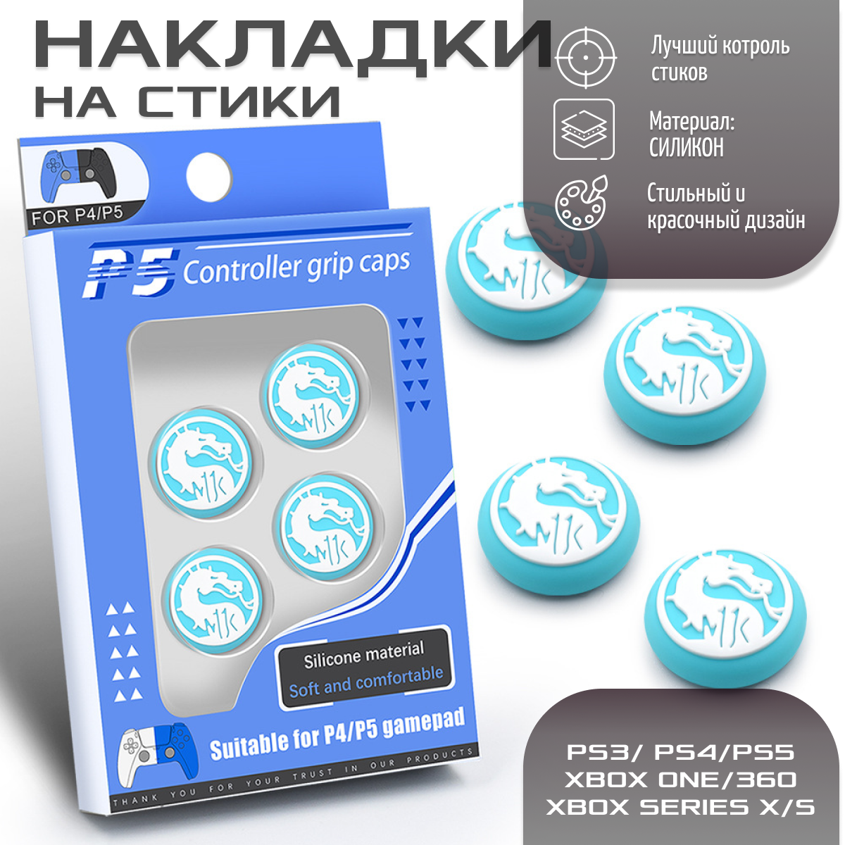 Купить Накладки на стики для геймпада PS5, PS4 MortalKombat, силиконовые защитные накладки на джойстики