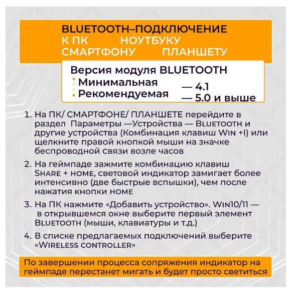 | Дополнительная информация | Игровой геймпад, зарядный кабель USB, инструкция |