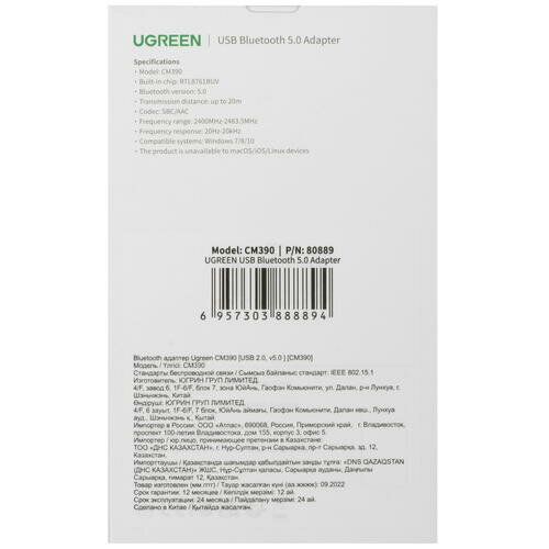 Адаптер UGREEN CM390 (80890) Bluetooth 5.0 USB Adapter Black интересное: