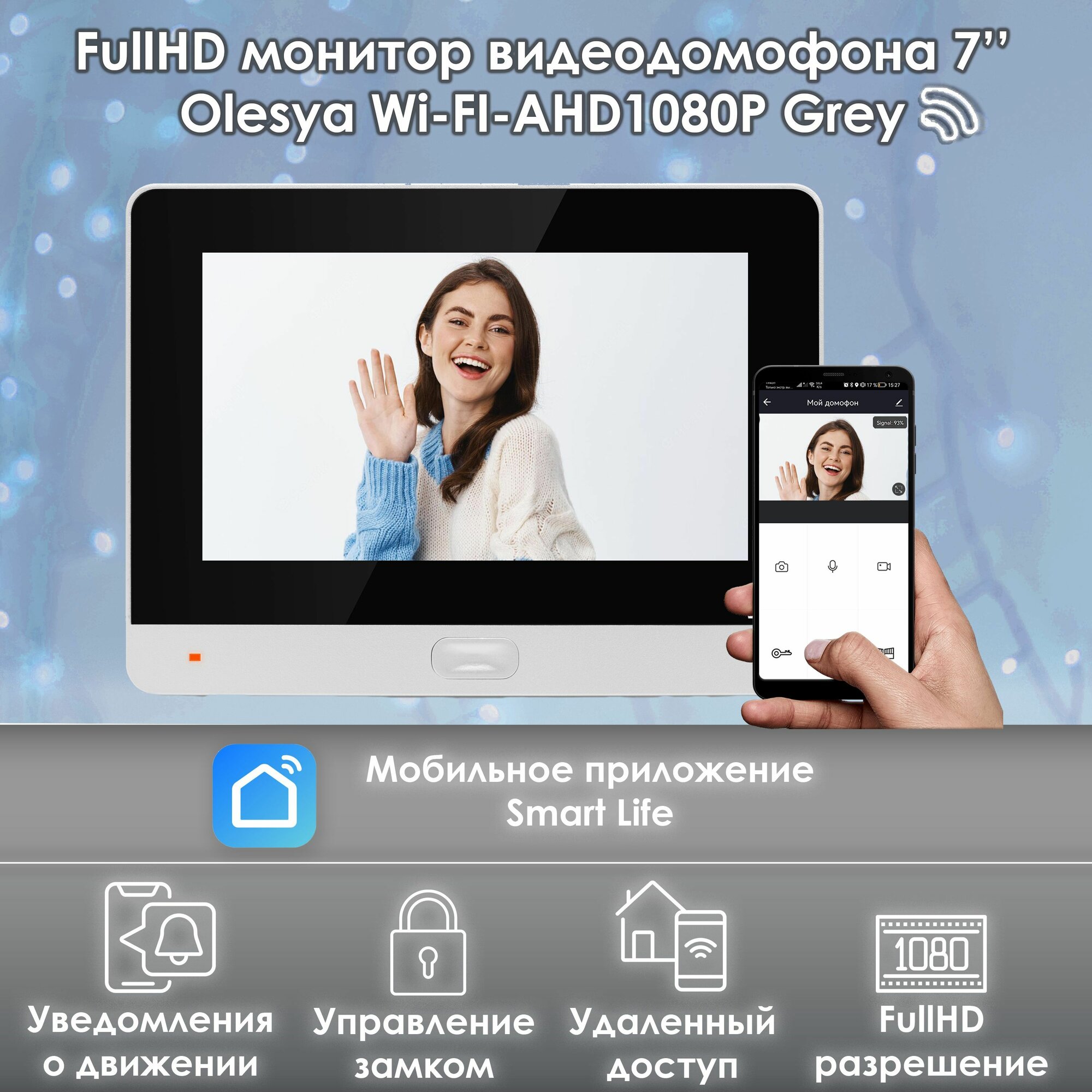 Видеодомофон Olesya Wi-Fi AHD1080P Full HD, серый, 7 дюймов / в квартиру / в подъезд
