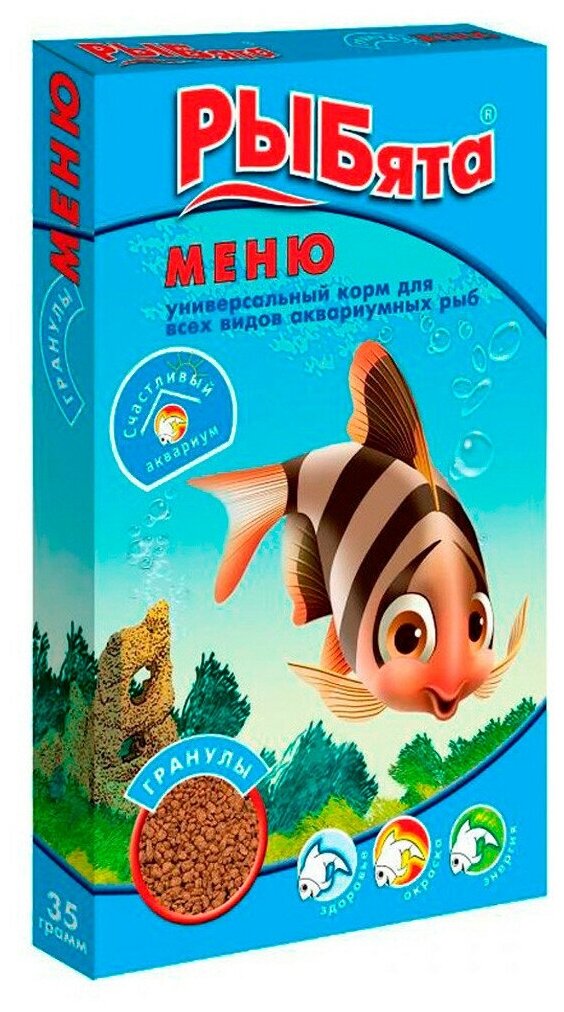 Корм Рыбята меню универсальный для всех видов аквариумных рыб в гранулах, 30 г