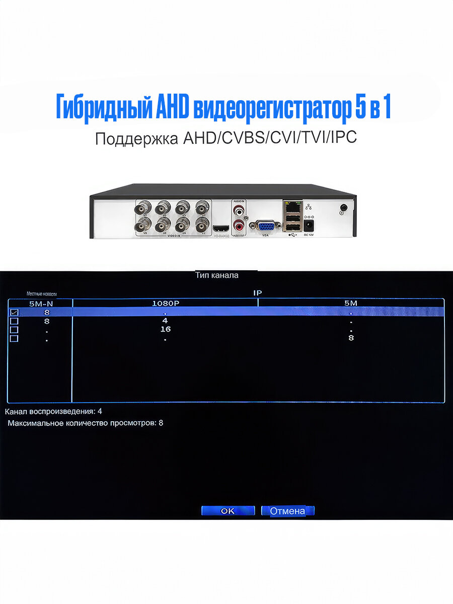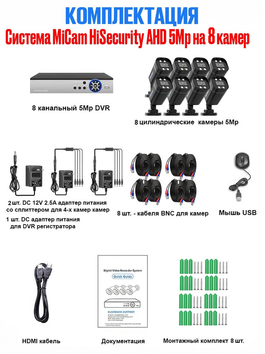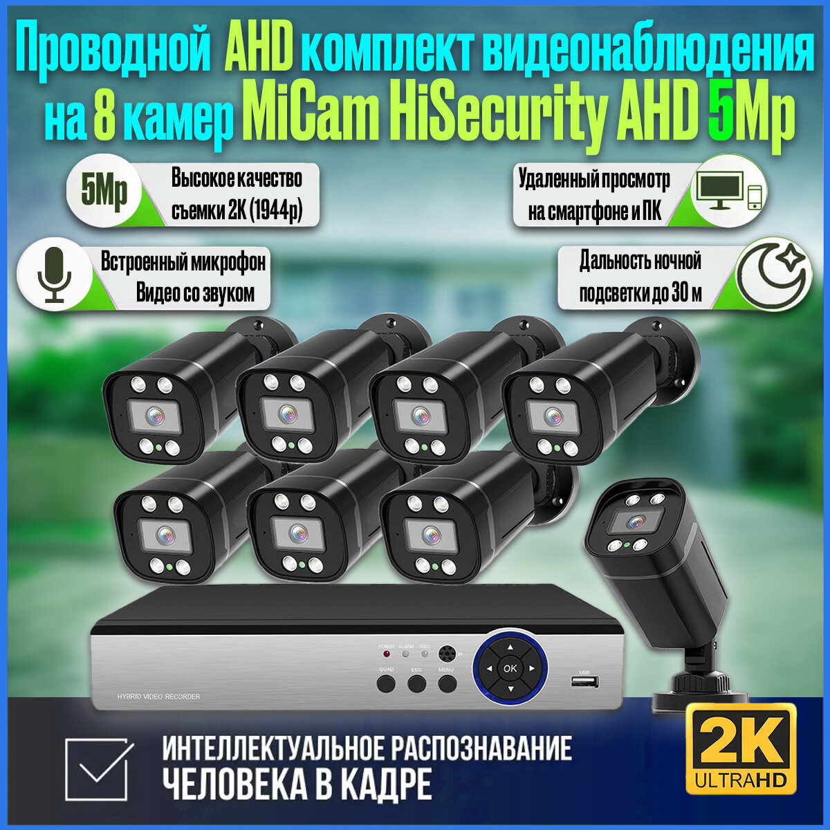 Проводной комплект видеонаблюдения на 8 камер для дома и улицы MiCam HiSecurity AHD 5Mp интересное: