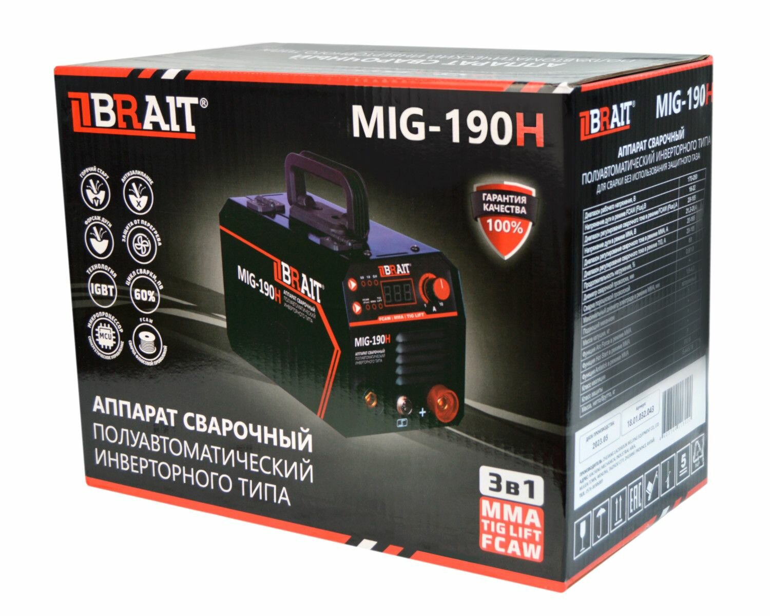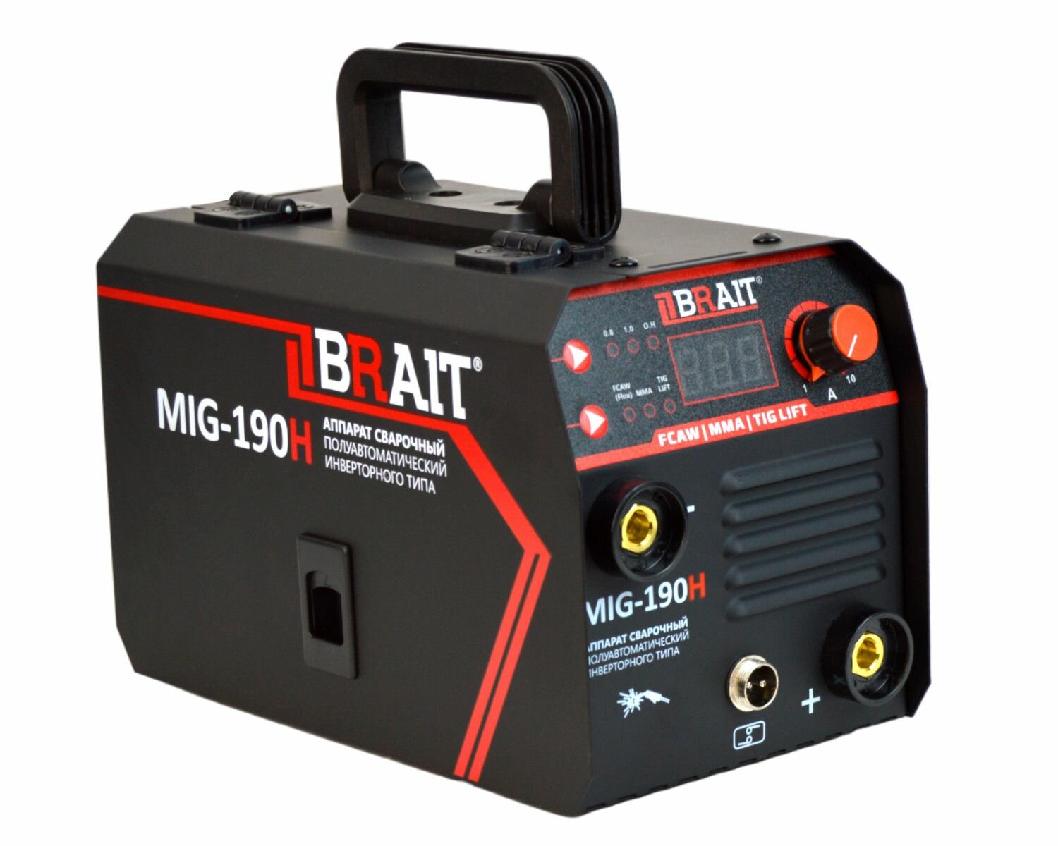 Инвертор сварочный полуавтомат Brait MIG-190H, 3 режима сварки MIG/FCAW+ TIG + MMA, 5.44 кг, 165А