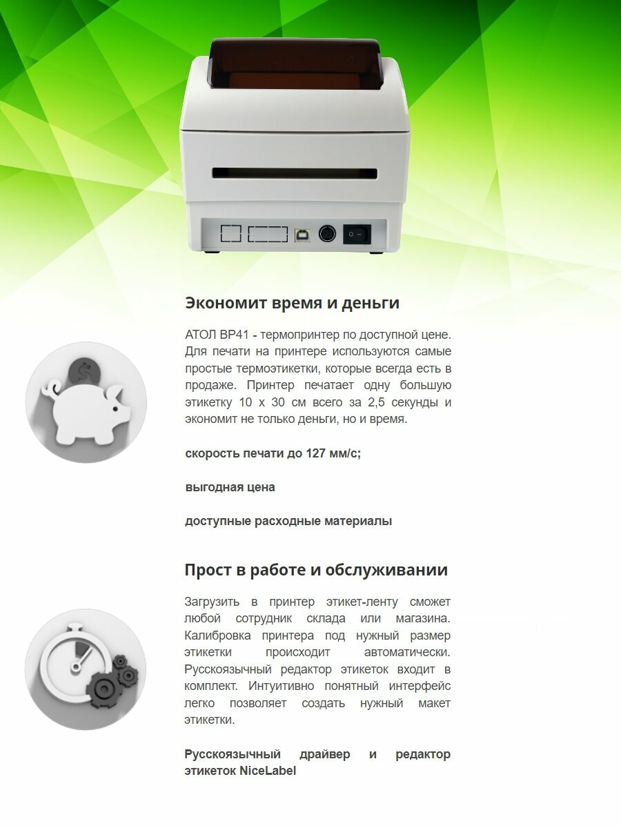 Термопринтер этикеток АТОЛ BP41 61887 интересное: