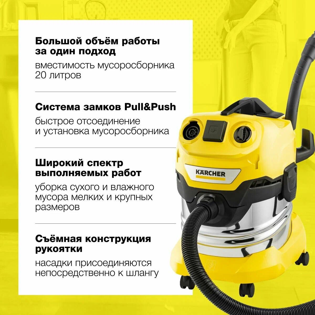 Строительный пылесос Karcher WD 4 P S V-20522 1000Вт уборка сухаясбор водывыдув желтый