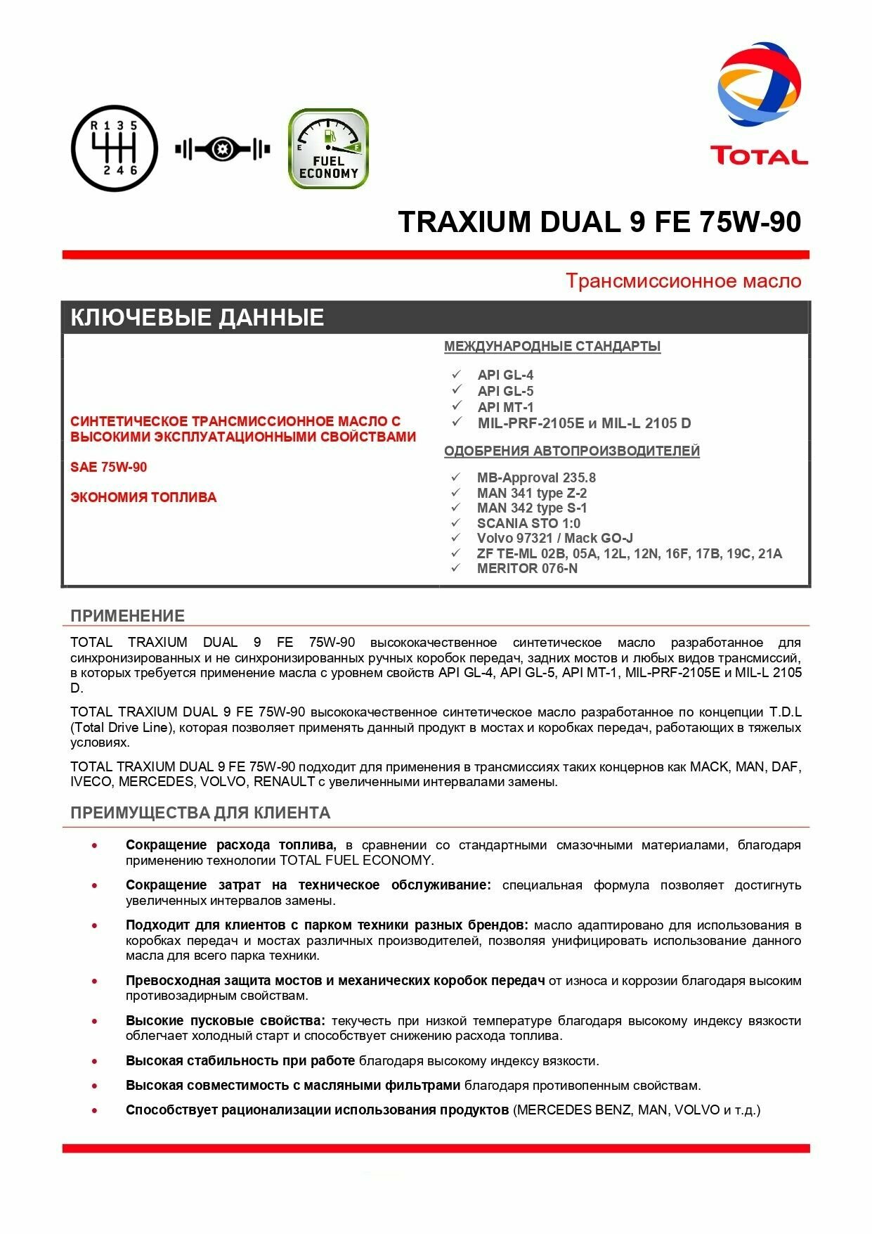 Купить TOTALENERGIES 10350901 Масо трансмиссионное TOTALENERGIES Transmission Dual 9 FE 75W-90 20 10350901