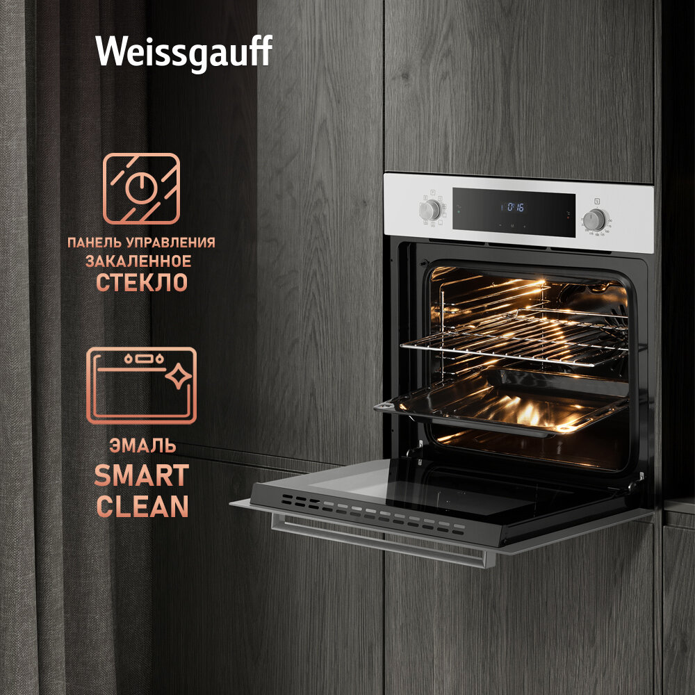 Духовой шкаф Weissgauff EOM 691 PDW, Объем XL 60 литров, Тройное стекло дверцы, Класс энергопотребления А интересное: